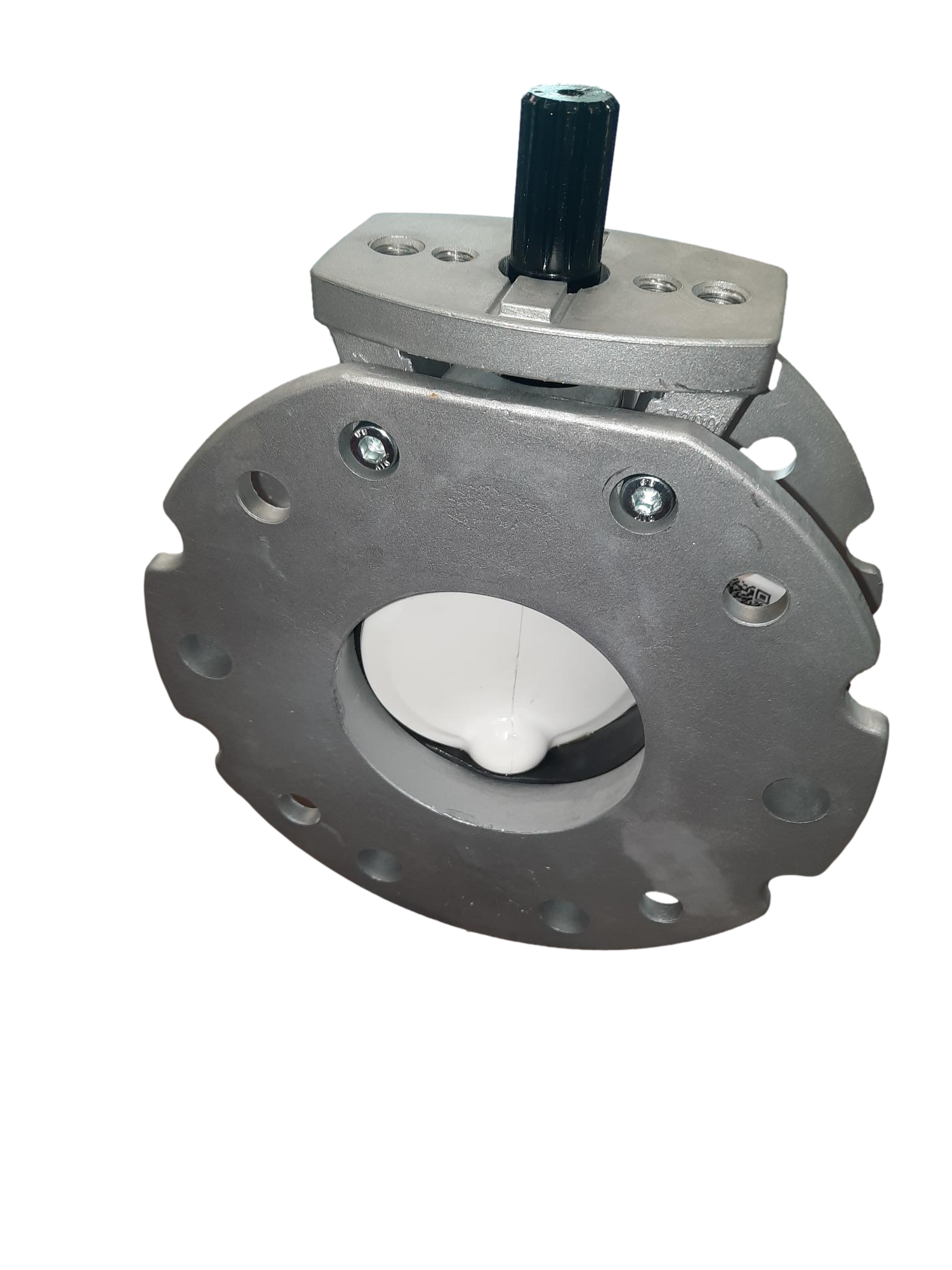 Motýlová klapka V2FS100SN se skládá ze dvou přírub vyrobených ze slitiny hliníku, disku z konstrukční oceli s navulkanizovaným technickým polymerem SINT®, dvěma plastovými pouzdry a těsněním NBR.